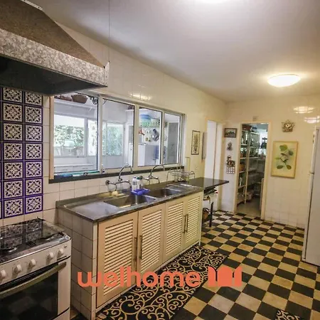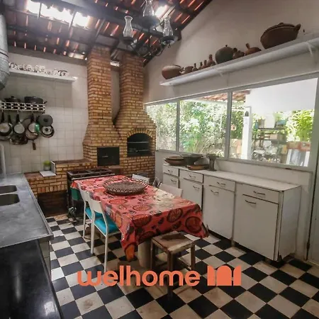 Casa Em Guaramiranga Com Piscina Coberta Villa offers a mini-kitchen featuring a fridge, an oven, and kitchenware. - ❓